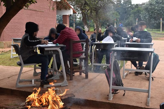 Mientras el presidente de la República, Santiago Peña, habla de una educación renovada, en lugares como Santa Rosa del Aguaray, San Pedro y Remansito (Villa Hayes), los estudiantes siguen dando clases a la intemperie, bajo temperaturas cercanas a 0°C, usando fogatas para soportar el frío. Las aulas simplemente no existen.