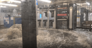 En Nueva York, varias estaciones de metro quedaron anegadas y el servicio sufrió retrasos importantes. Un video verificado por Reuters mostró cómo el agua ingresaba con fuerza en la estación 28th Street.