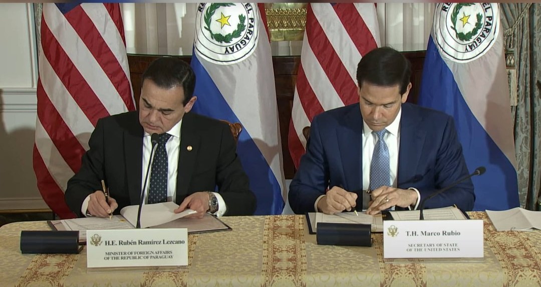 Paraguay y Estados Unidos firmaron un nuevo “Acuerdo sobre el Estatuto de Fuerzas”, que busca fortalecer la cooperación bilateral en materia de seguridad y lucha contra el crimen organizado. La firma se llevó a cabo en el Departamento de Estado en Washington, con la participación del Secretario de Estado estadounidense, Marco A. Rubio, y del canciller paraguayo, Rubén Ramírez Lezcano.